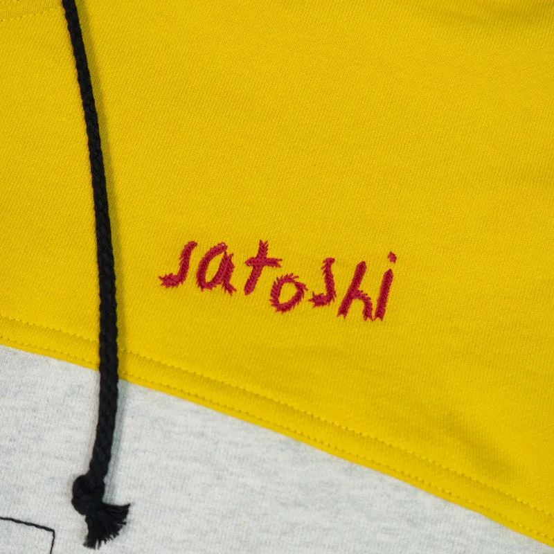 Our Black Satoshi Nakamoto Crossover Hoodie stands out with sharp contrasts and a relaxed feel. We fused deep black, bright yellow, and soft gray for a look that catches eyes instantly. The fit is roomy, the soft cotton fabric feels smooth, and the hood adjusts to your vibe. A sleek line-art “7” across the front and a small Satoshi mark add a creative twist. With snug cuffs and a bold layout, this hoodie is made for effortless statement style.