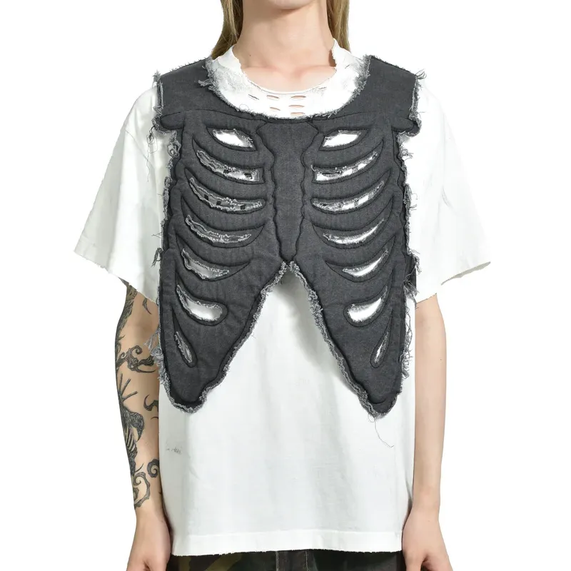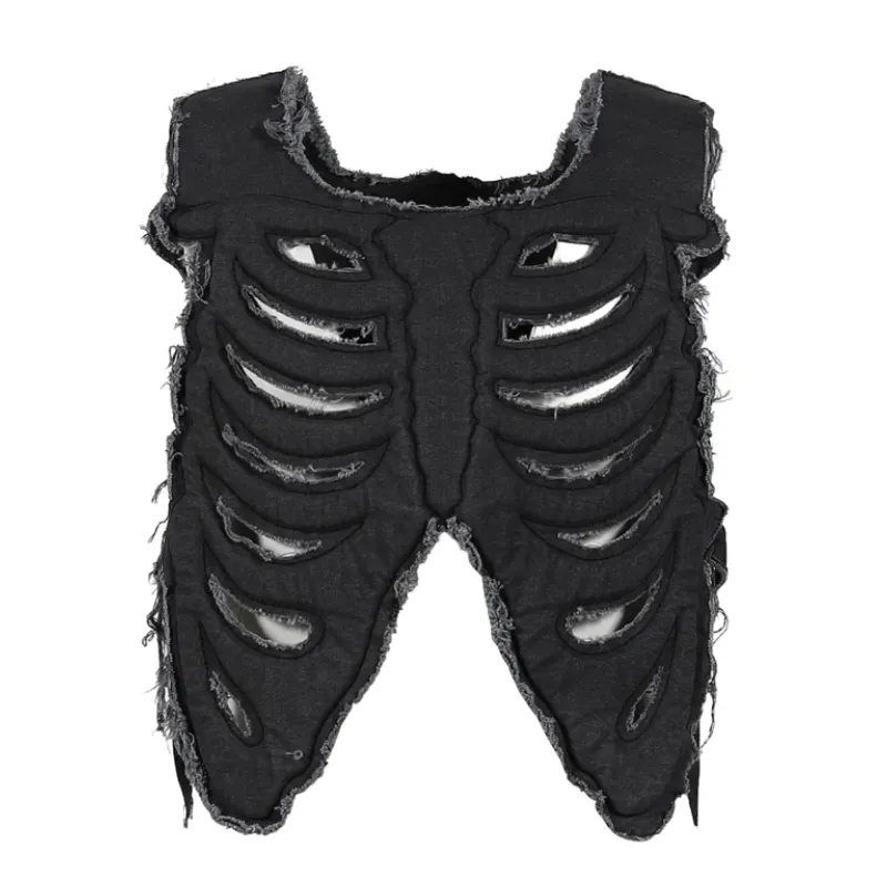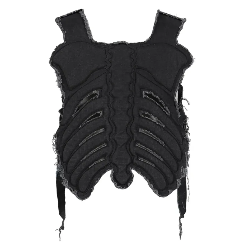 Make bold moves with our Black Satoshi Nakamoto Skeleton Vest. Its washed patina and cut-out skeletal design give vintage grit with a futuristic twist. Lightweight padded cotton keeps it edgy yet wearable. Raw-edge trim and distressed details add character. Adjust the side buckle straps and velcro shoulders for a fit that moves with you. It’s rebellion in fabric—a wearable armor for anyone who defies the ordinary.