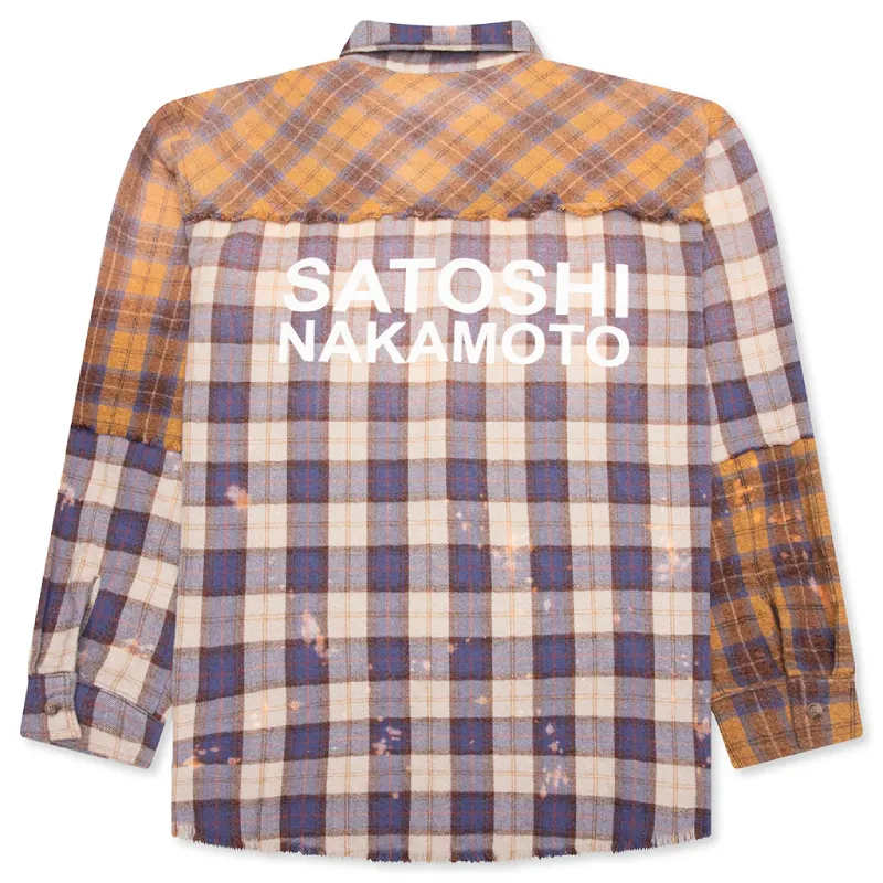 Brown/Multi Satoshi Nakamoto Patchwork Logo Flannel Shirt
