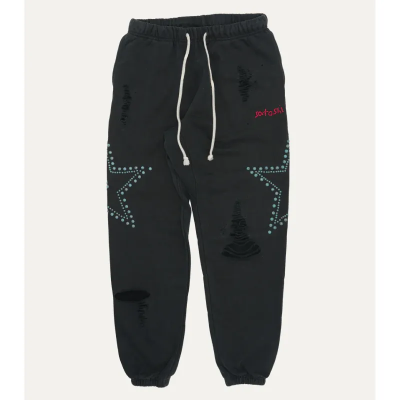 Destroyed Black Satoshi Nakamoto Star Studded Sweatpants