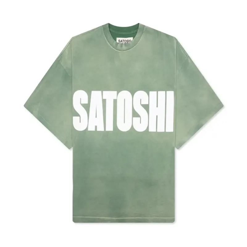 Push your style with our Green Satoshi Nakamoto Impact Logo Oversized Tee. It’s cut from soft cotton and shaped in an oversized fit that moves with you. Dropped shoulders keep it relaxed, while the washed finish adds a lived-in edge. The front carries a strong “Satosh” print, and the back hits harder with “Nakamoto” across the shoulders. Perfect for making a statement without trying too hard.