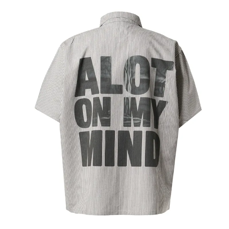 Own every thought in our Grey Satoshi Nakamoto A Lot On My Mind Oversized Workshirt. Its subtle grey stripes give off relaxed, vintage workwear vibes. A bold graphic print on the front and back carries the message—literally what’s on your mind. Featuring a pointed collar and smart quarter-zip closure, it’s easy to layer over a tee or button up solo. Crafted from 100% cotton with a roomy, oversized cut that moves with you. We created this shirt for those days when your mind runs deep.