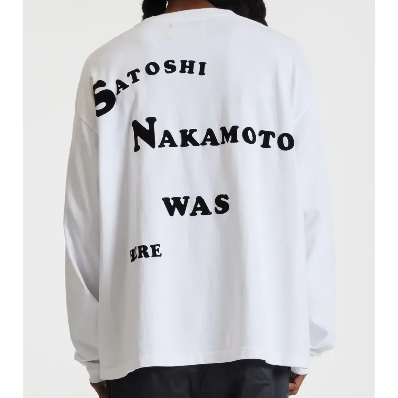 Optic White Satoshi Nakamoto Follow Me Long Sleeve Tee