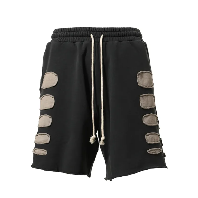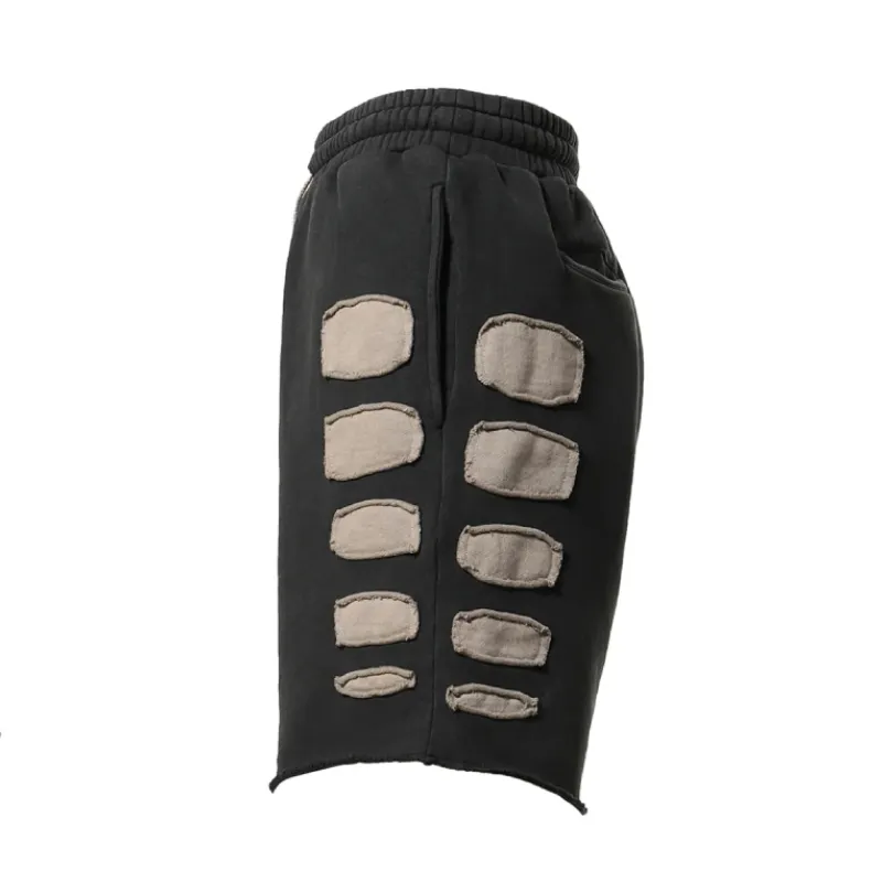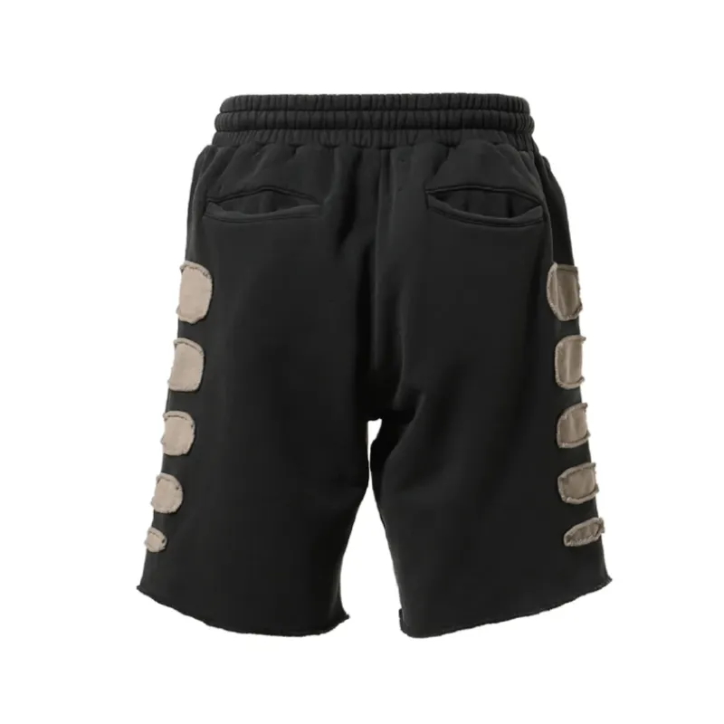 Black/Destroyed Heather Satoshi Nakamoto Patchwork Moto Shorts