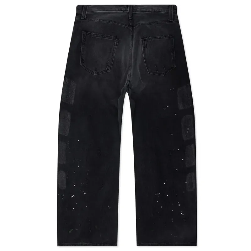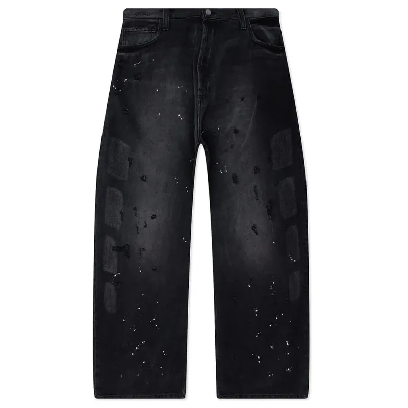 Our Washed Black Satoshi Nakamoto Baggy Moto Pant leans into a loose, lived-in look. It’s cut from 100% cotton with a relaxed fit that stacks just right. Faded tones, heavy distressing, and paint stains give it a worn, street-built vibe. Finished with a throwback button-fly and deep-set pockets that do more than just look good. Our goal? To create a pair that feels broken-in from day one—and wears better every time.