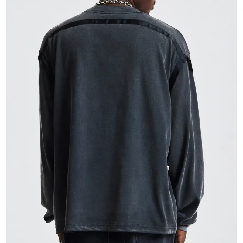 Own the streets with our Washed Black Satoshi Nakamoto Bondage Logo Longsleeve Tee. Its washed black fabric gives a lived-in edge, while bondage-style straps across the front bring attitude to your look. We kept the fit loose for comfort that moves with you. It feels soft against the skin but stays strong through wear. The bold Satoshi Nakamoto print stamps it with meaning—a tribute to the original disruptor.