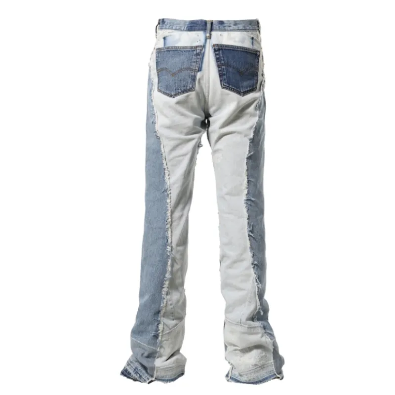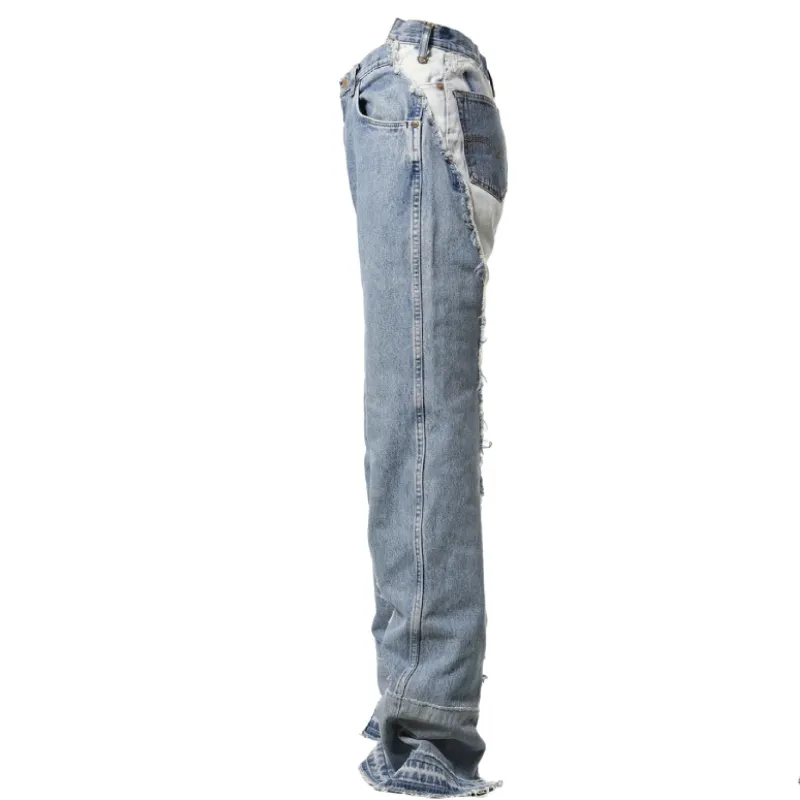Feast your eyes on the Washed Repair Blue Satoshi Nakamoto Reconstructed Denim Pant—a standout pair with serious visual drama. These jeans mix multiple denim washes into a bold patchwork design, creating a deconstructed vibe that’s nothing short of eye-catching.
