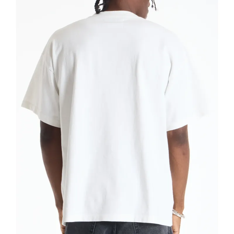 Cut in a boxy, relaxed fit with dropped shoulders and wide sleeves, it’s crafted from heavy-weight white cotton with a thick ribbed crewneck. The plain back highlights the oversized drape for effortless everyday style.