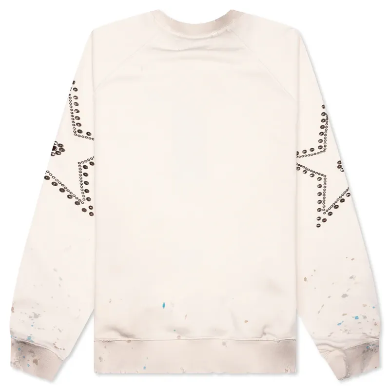 Vintage White Satoshi Nakamoto Star Studded Crewneck Sweater