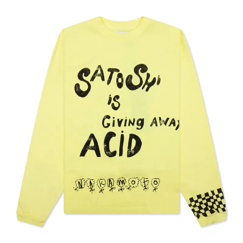White/Yellow Satoshi Nakamoto Acid Longsleeve Shirts